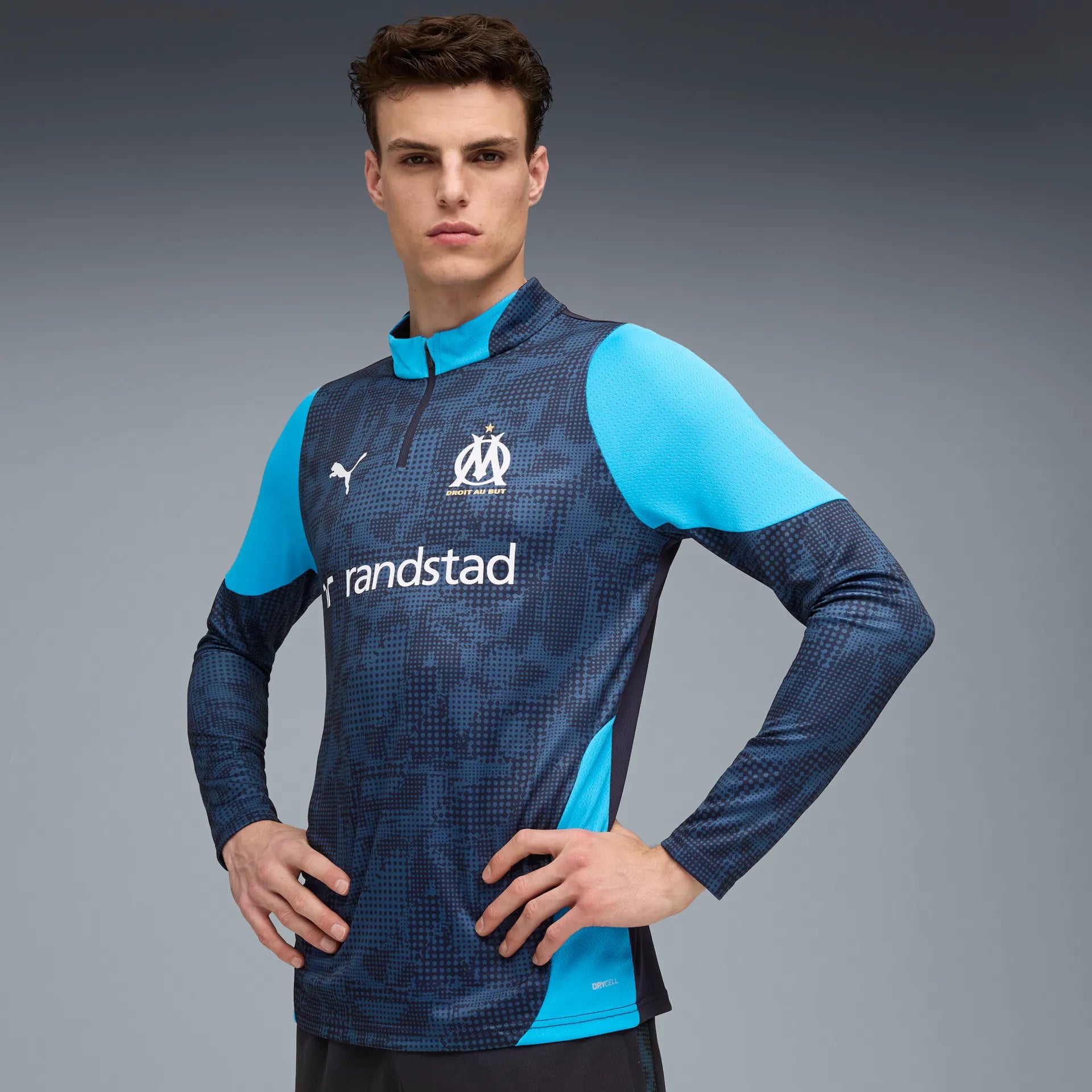 Ce haut d’entraînement Olympique de Marseille 25/26 homme en bleu nuit, signé Puma et disponible chez PlanetFoot, allie performance professionnelle et authenticité marseillaise.