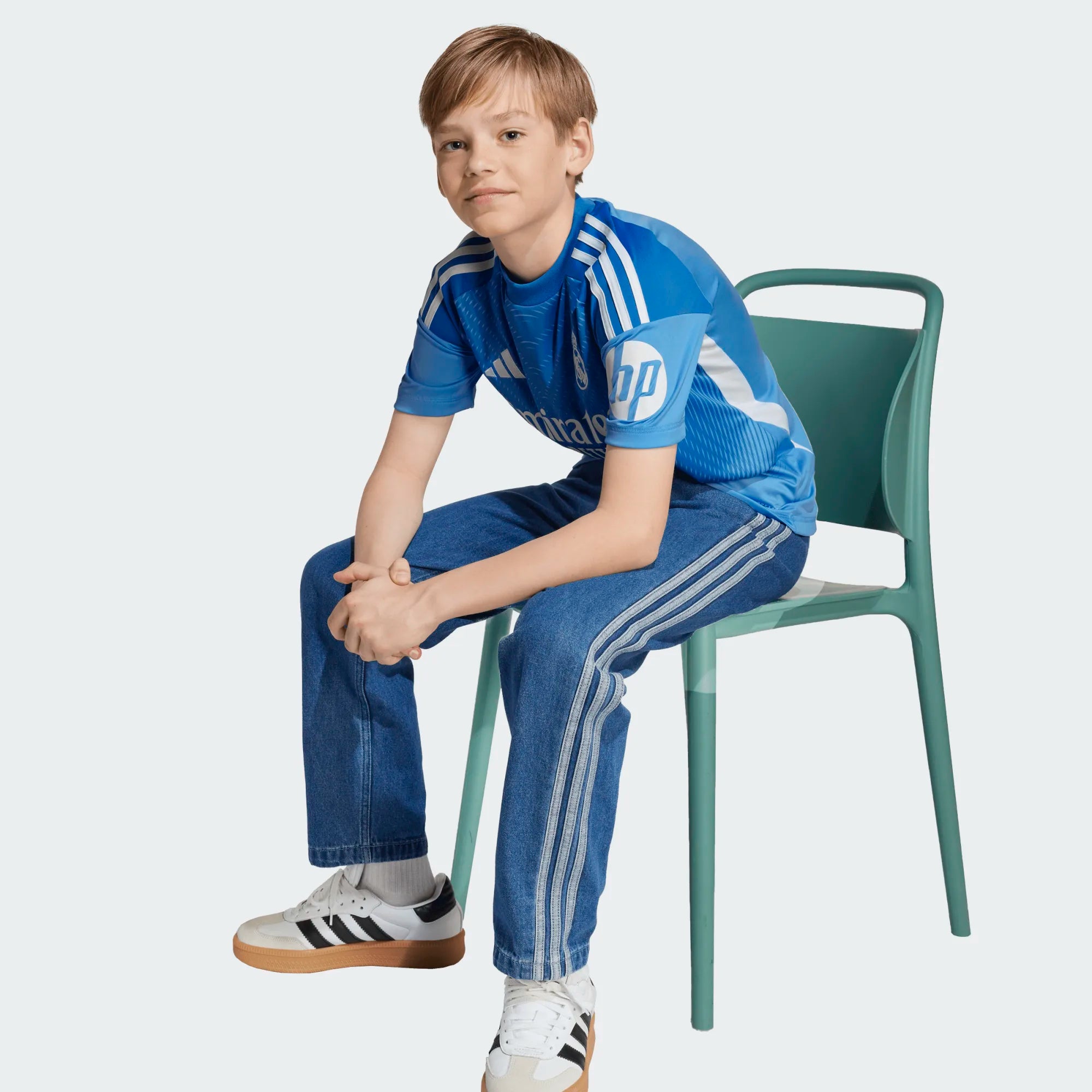 Protège tes cages comme les Merengues avec le maillot gardien domicile Real Madrid 2025/26 pour junior, conçu par Adidas.