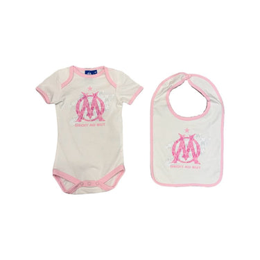 Ensemble Bébé Fille OM Blanc Rose 2026 Body + Bavoir Olympique de Marseille