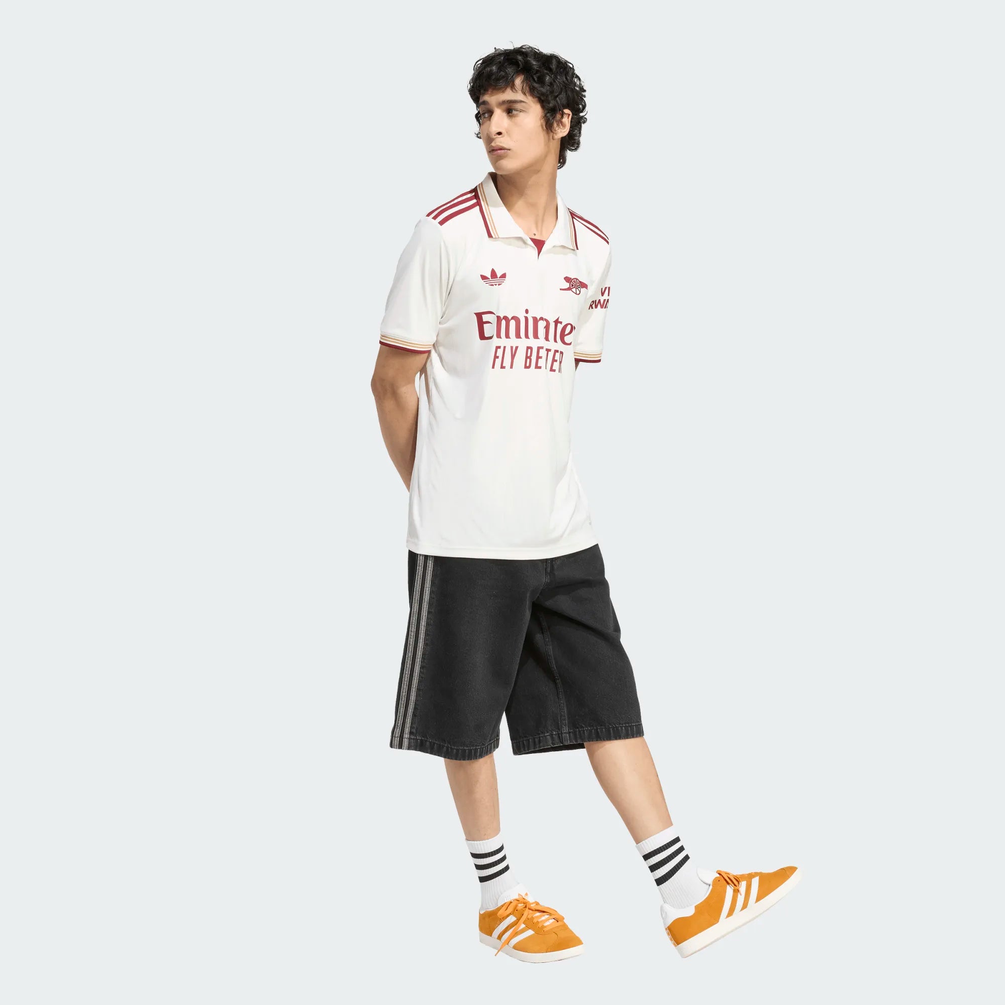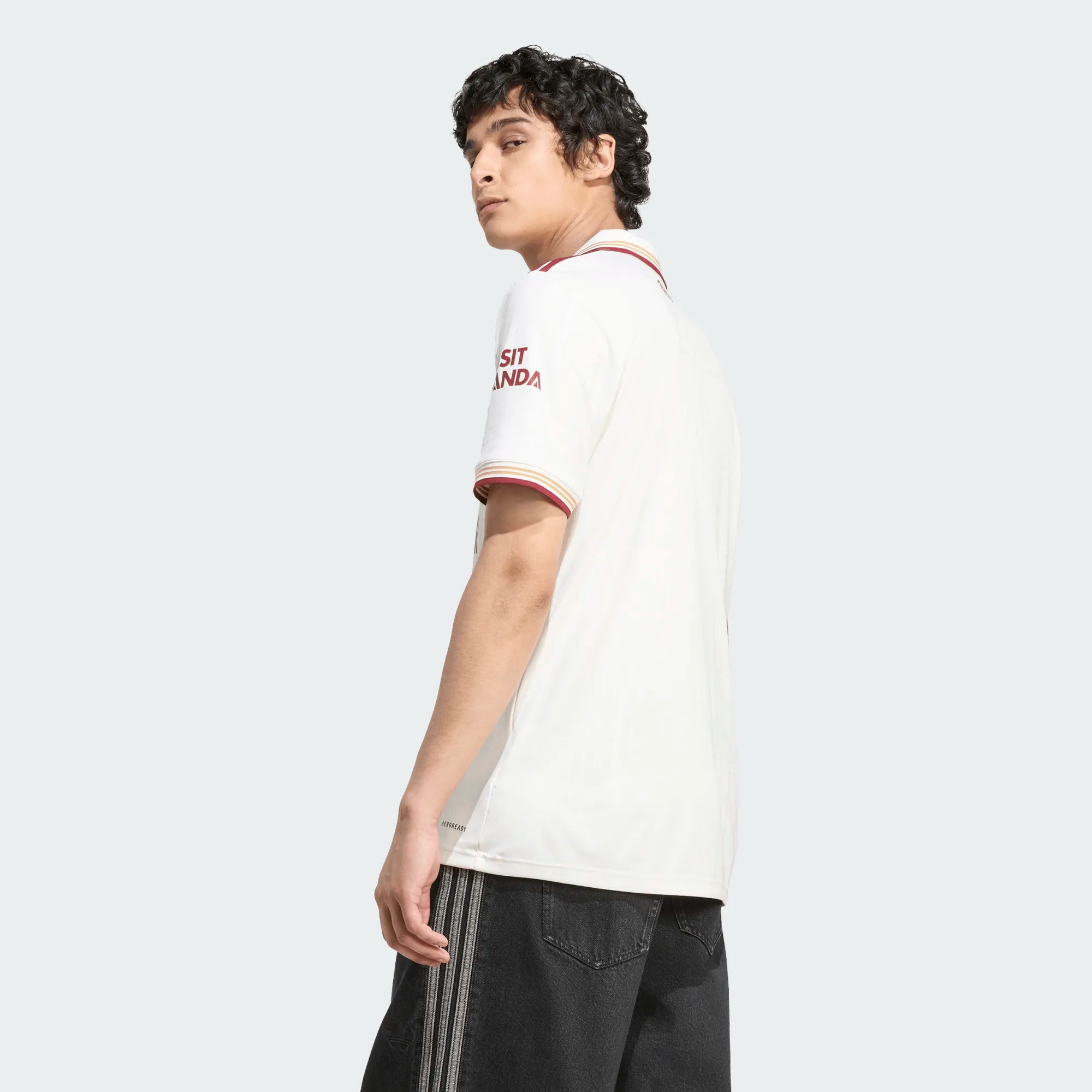 Want to wear the history of the legendary Highbury? The Arsenal 25/26 adult third jersey from adidas at PlanetFoot features an off-white colorway and a subtle graphic pattern that celebrates the Art Deco style of the old stadium's East Stand. With its retro polo collar and burgundy logos, it exudes a polished and authentic look.