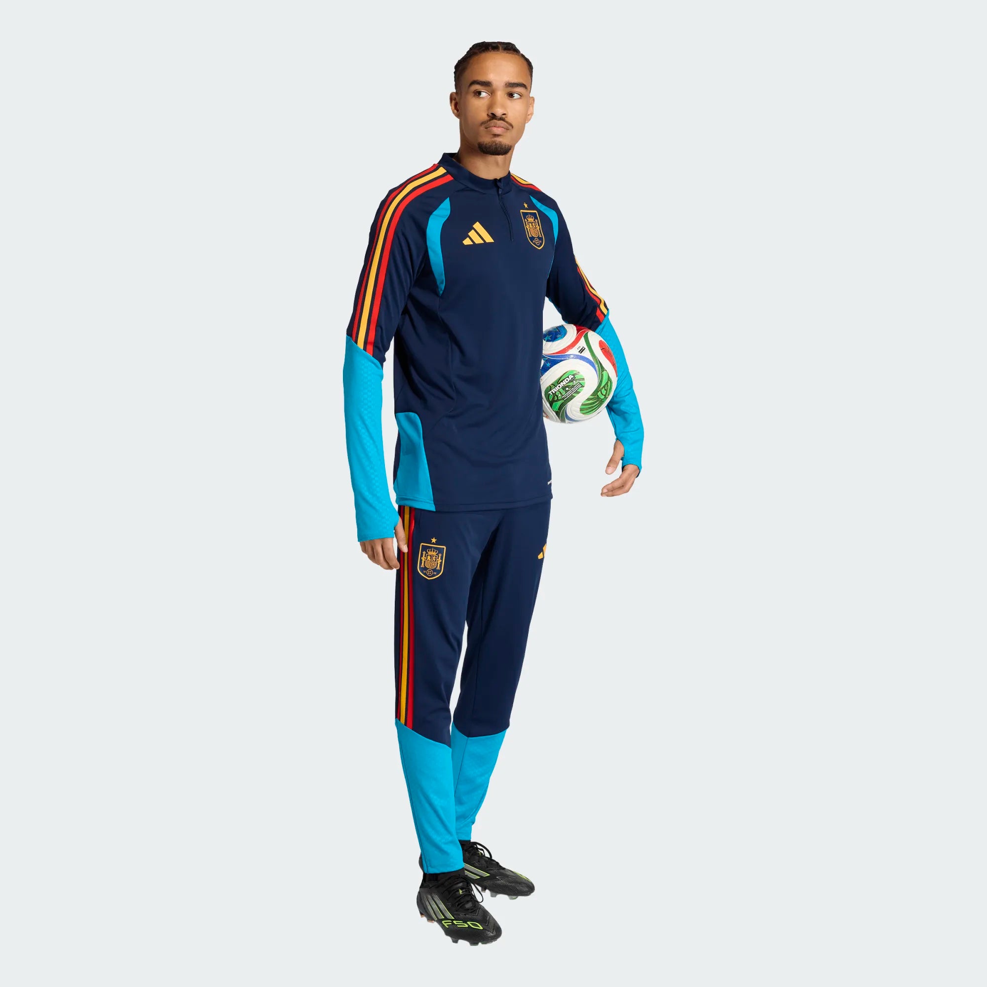 This Spain 2026 Tiro training top , by adidas , replicates the official style worn by the Spanish players in preparation for the 2026 FIFA World Cup . Its sophisticated black design , accompanied by red and yellow accents , embodies the strong and modern identity of La Roja.
