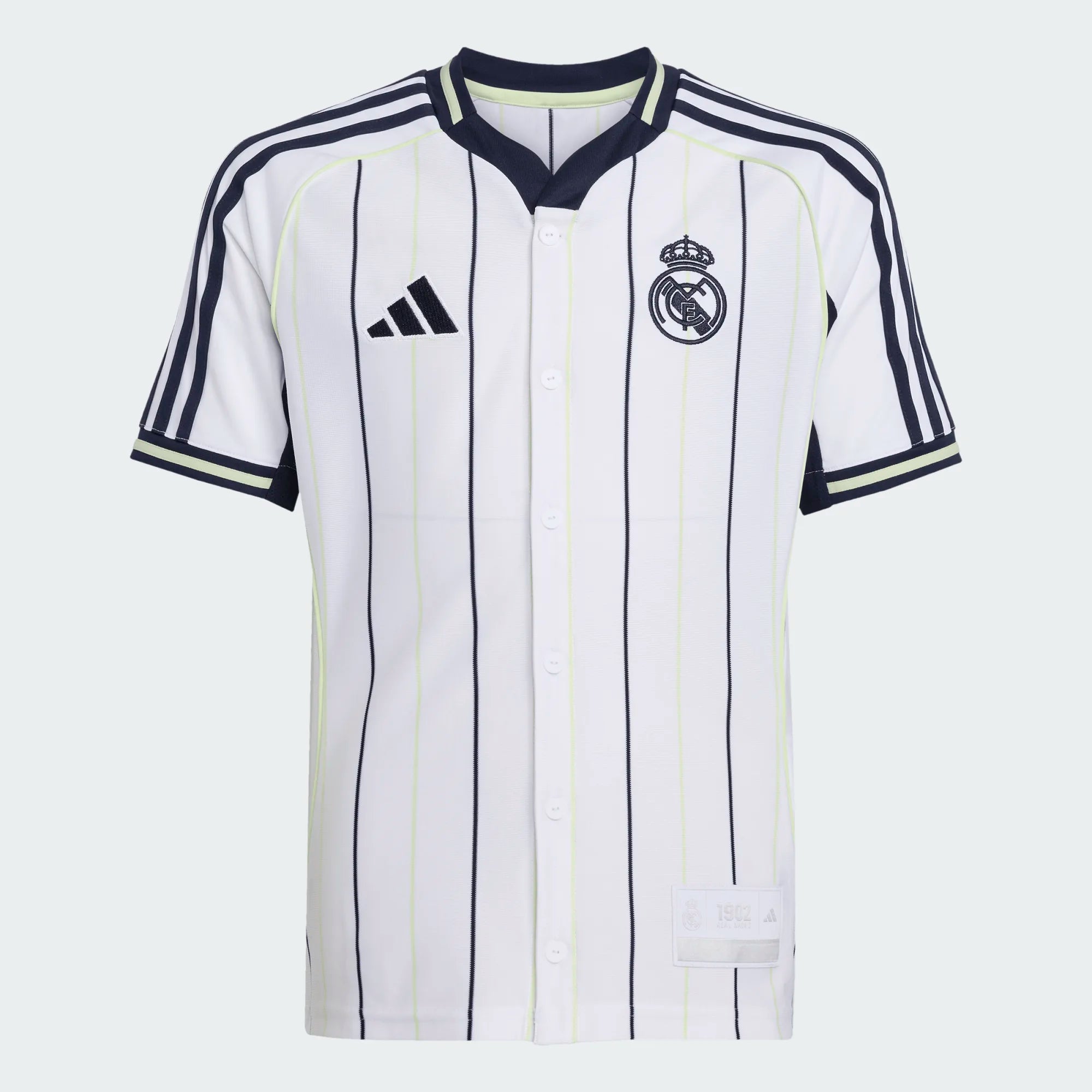 A rare and stylish junior jersey for young Real Madrid fans, available in the 2025/26 collection on PlanetFoot.