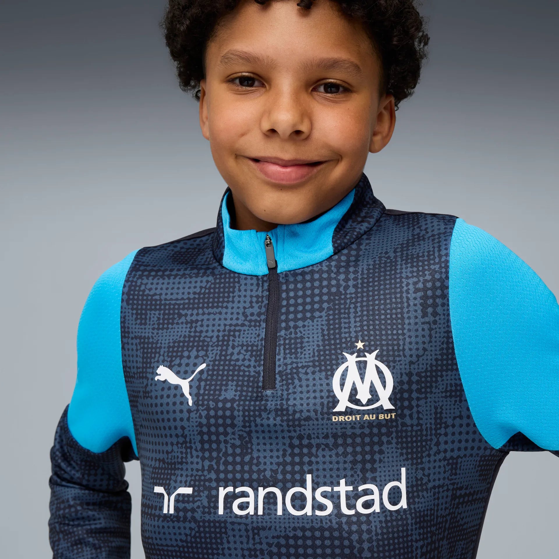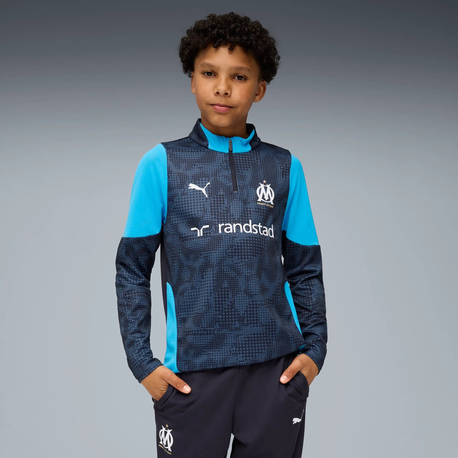 Give young fans a pro look with the Olympique de Marseille 2025/26 Midnight Blue 1/4 Zip Training Top for kids and teens from Puma.