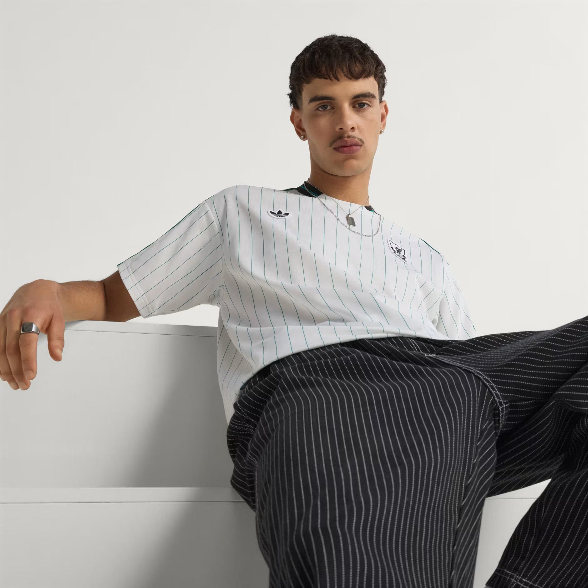Want to relive the spirit of the stands of yesteryear? The Terrace Icons Liverpool FC adult jersey from adidas at PlanetFoot features a white and green pin-stripe design, inspired by 1980s football kits, a truly vintage nod.