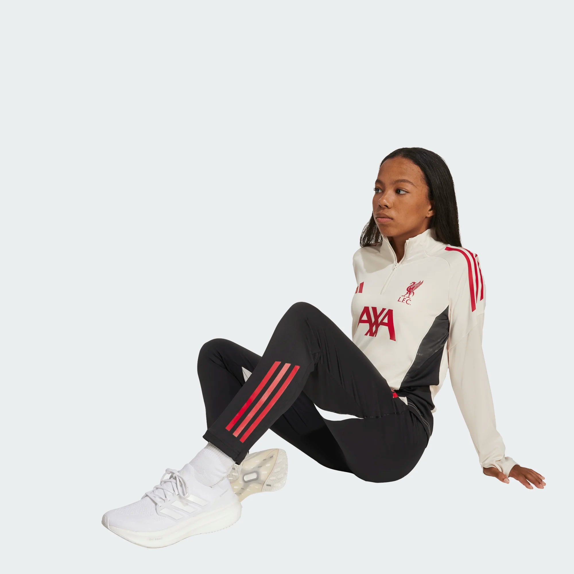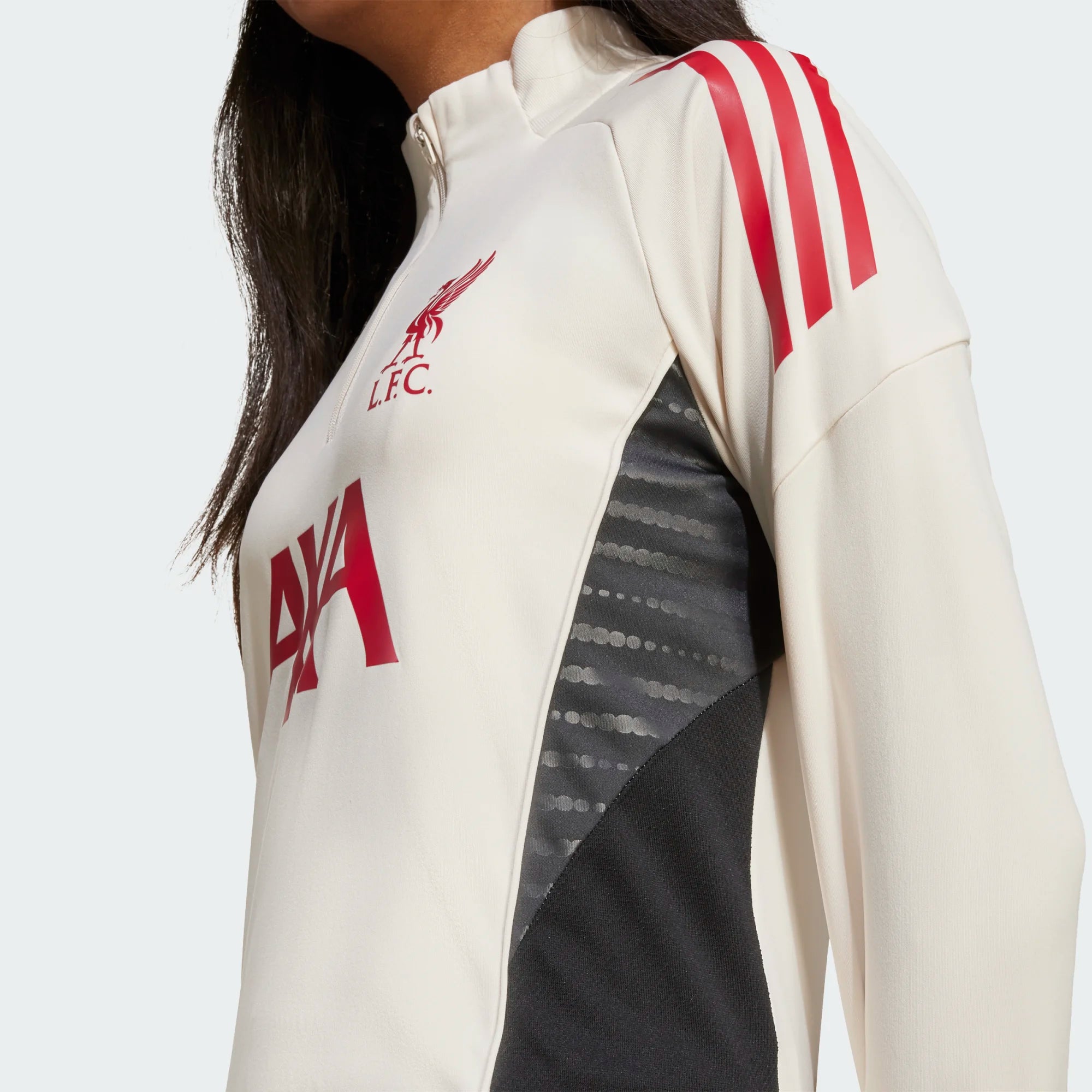 The fabric is lightweight, made entirely of recycled polyester, with AEROREADY technology to effectively wick away sweat. Cuffs with thumbholes prevent the sleeves from riding up during intense activity. The Liverpool badge is heat-sealed for a clean, non-aggressive finish.