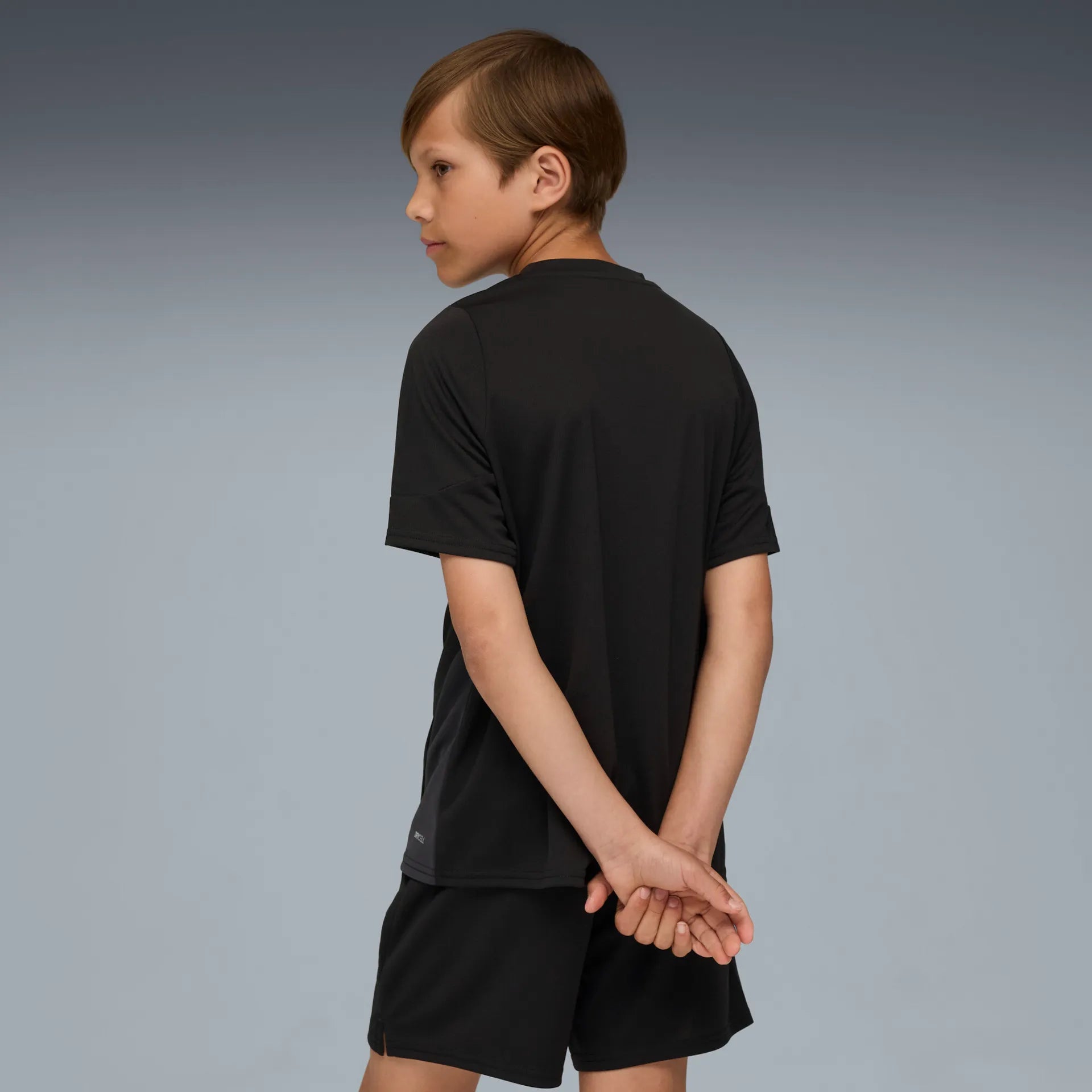 This Manchester City 25/26 training shirt for kids/teenagers from Puma and available at PlanetFoot puts style and efficiency at the heart of the game. Featuring dryCELL technology, it effectively wicks away sweat to keep the young player dry during exercise. The regular fit is designed to follow movements without hindrance, while the crew neck ensures a comfortable fit for everyday use. The Manchester City badge adds a touch of Cityzens pride to every training session.