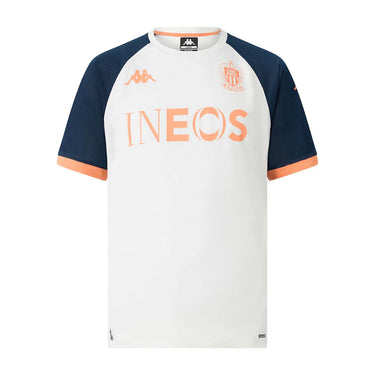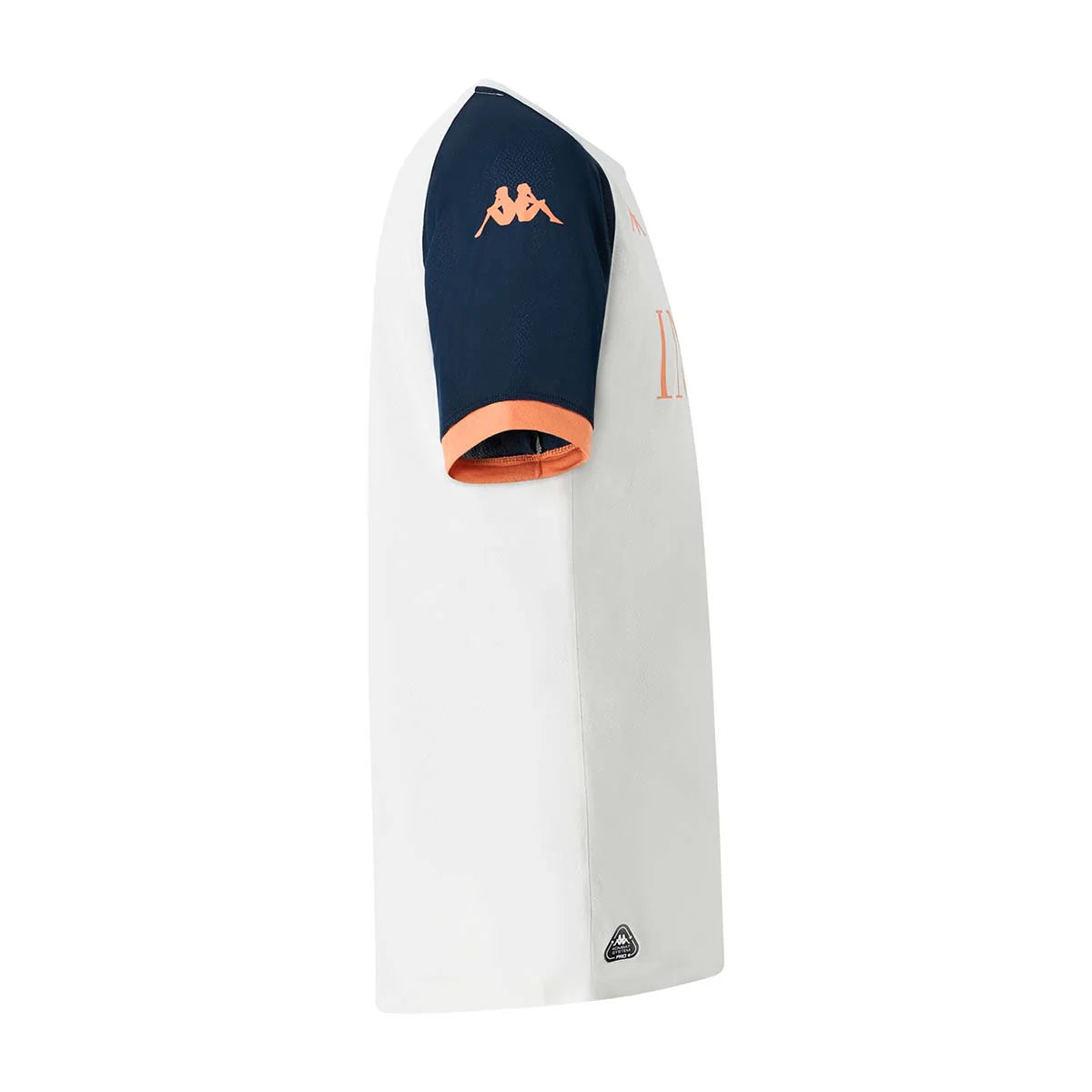 Want a clean yet powerful look? The Mokiba Pro Nice 25/26 adult jersey from Kappa at PlanetFoot comes in a bright white color with orange accents, reflecting the club's identity: simple yet bold in every detail.