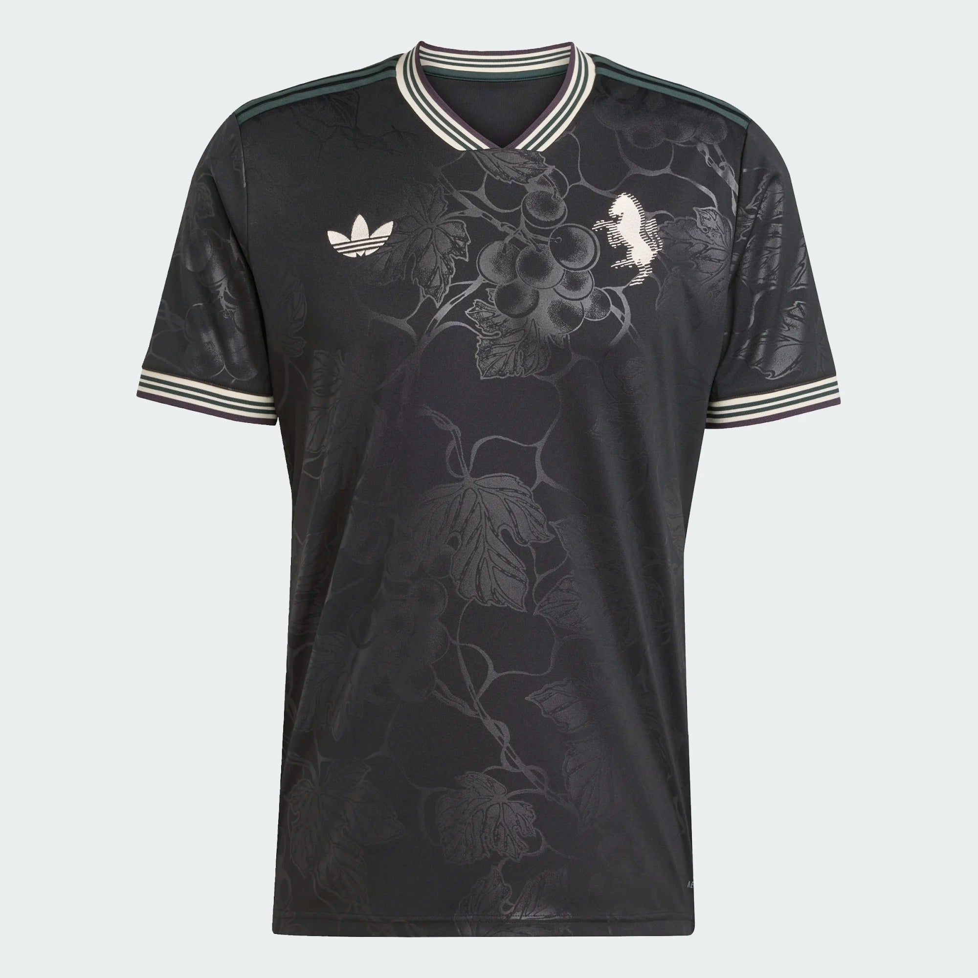 Pay homage to Juve. A sophisticated black jersey, adorned with vineyard-inspired graphics and archival details, redefines understated style.