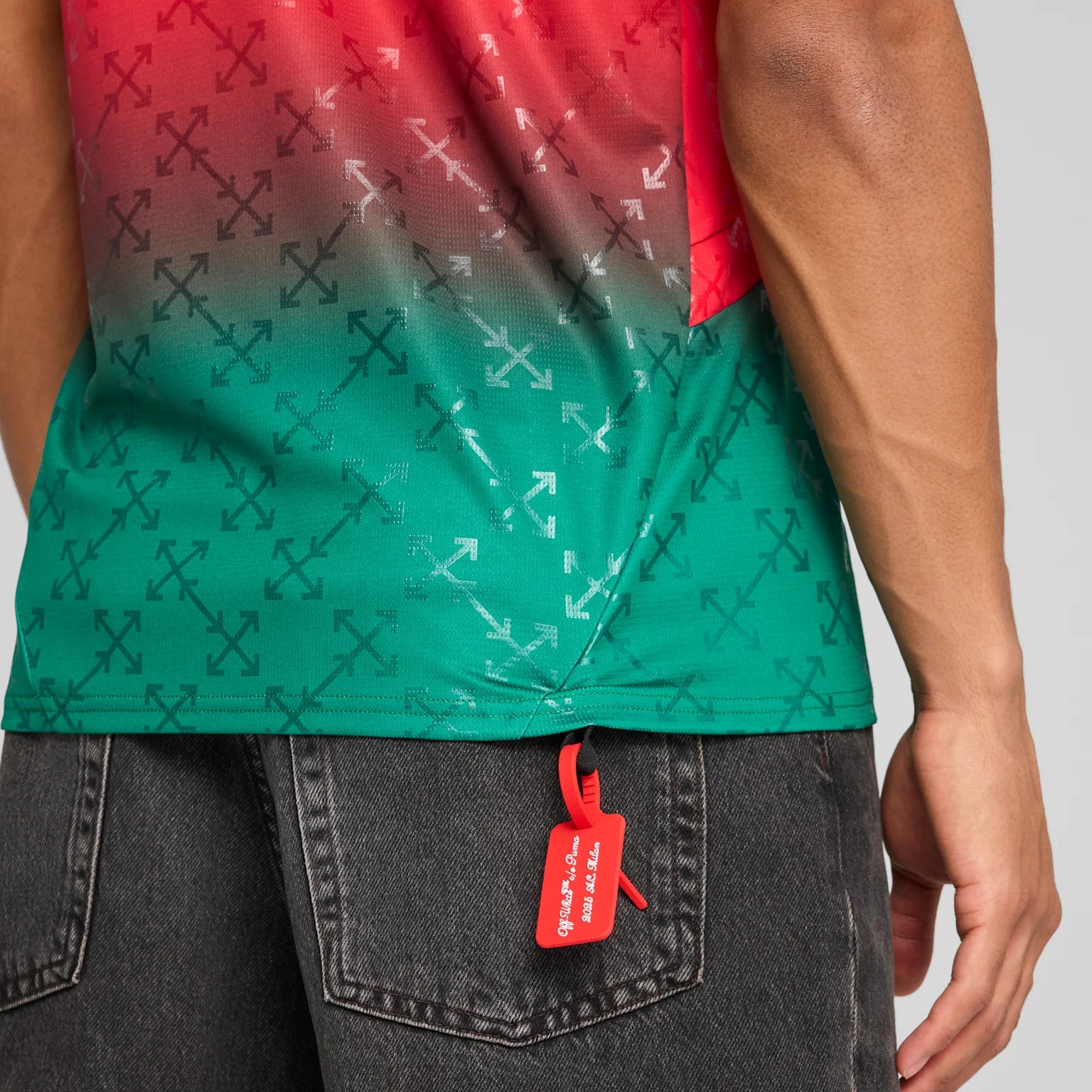 Committed to a sustainable approach, this jersey is made from 95% recycled polyester thanks to the RE:FIBRE program. The Off-White™, Puma logos and the AC Milan crest on the chest mark a strong and refined identity.