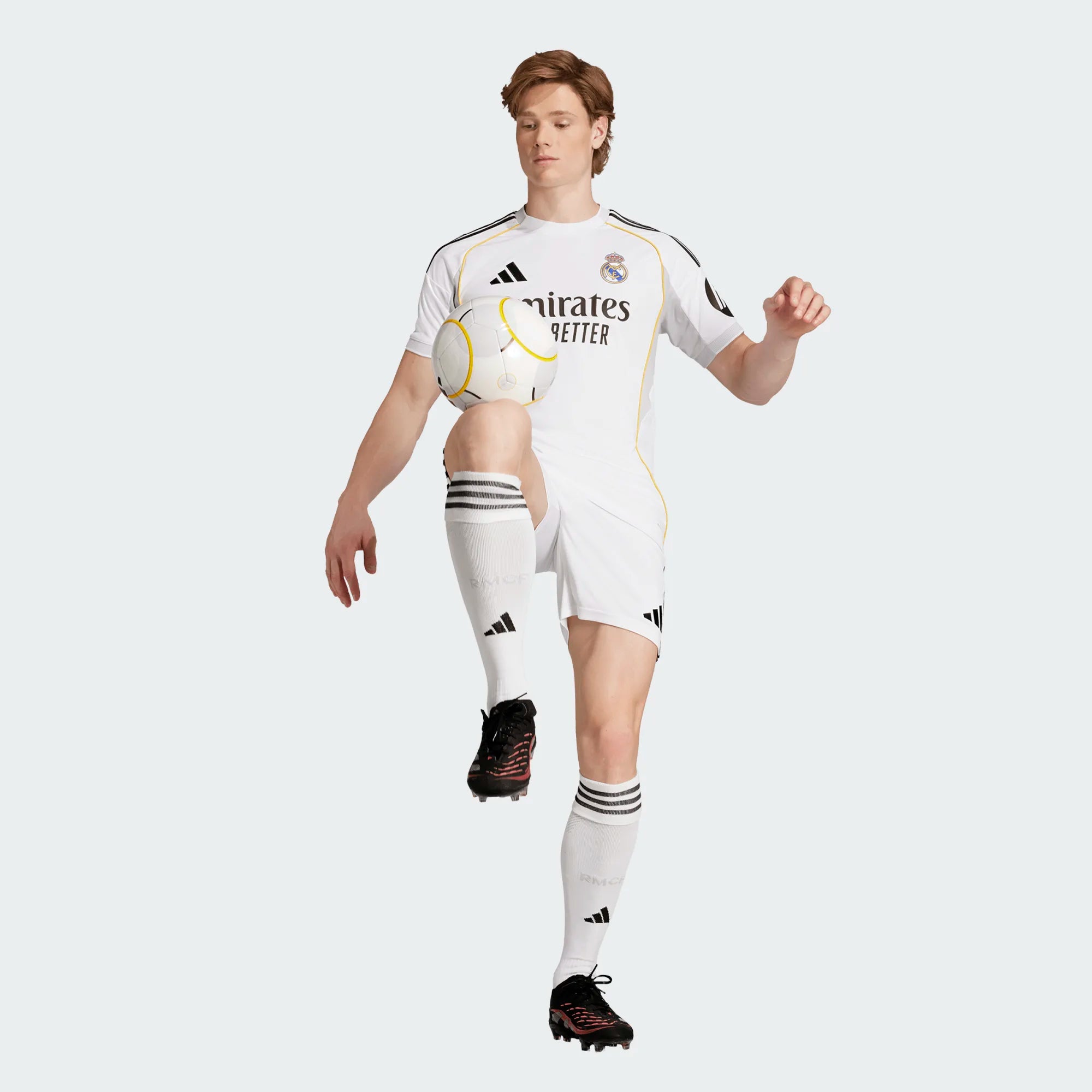 Complete your Merengues kit with the Real Madrid 2025/26 men's home shorts , designed by Adidas.