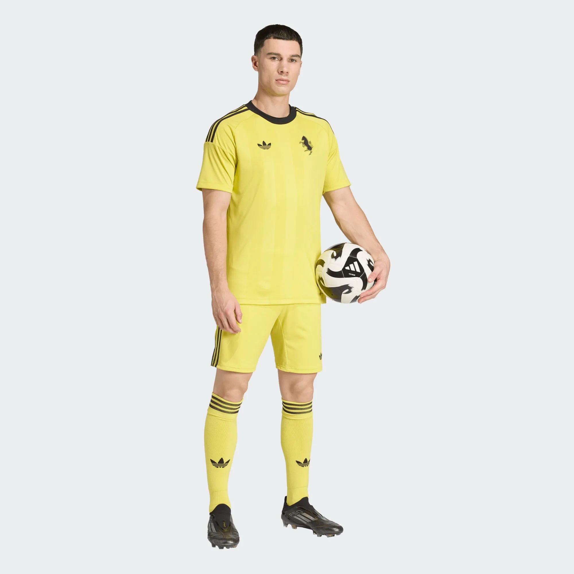 This Juventus 25/26 goalkeeper jersey features a vibrant yellow colorway , designed to combine visibility and style on the pitch. Inspired by the adidas Tiro 25 Competition range, it combines technical features and comfort. Its slim fit hugs the figure while allowing maximum freedom of movement, essential for diving and reflex saves.