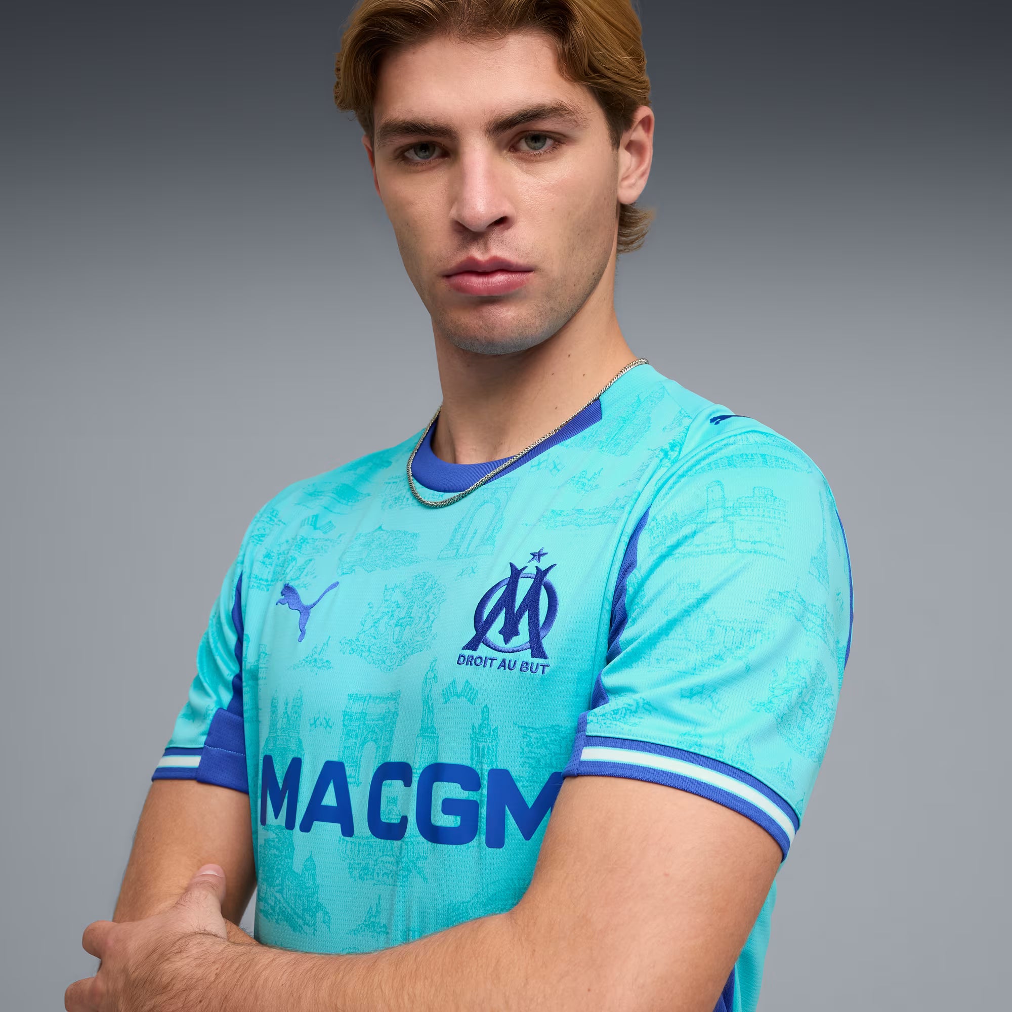 Le maillot OM Édition Spéciale Marseille Monumentale 25/26 - Gardien - PUMA bleu réinterprète l’identité culturelle marseillaise dans une version dédiée aux gardiens. Inspiré du concept “Marseille Monumentale”, ce maillot gardien combine un design artistique fort avec une technicité pensée pour les mouvements dynamiques propres à la position de gardien. Disponible exclusivement chez PlanetFoot, ce modèle bleu incarne à la fois l’histoire du club et une fonctionnalité maximale pour les entraînements comme pour les matchs.