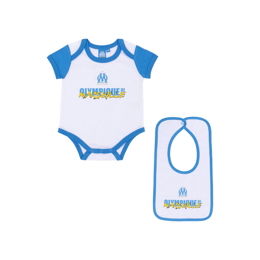 ¿Quieres transmitir la llama olímpica desde el primer día? El conjunto blanco y azul OM Baby 2025/26 de PlanetFoot incluye un práctico body y un peto a juego, decorado con el logo oficial del OM. Un conjunto perfecto que combina practicidad con la identidad marsellesa.