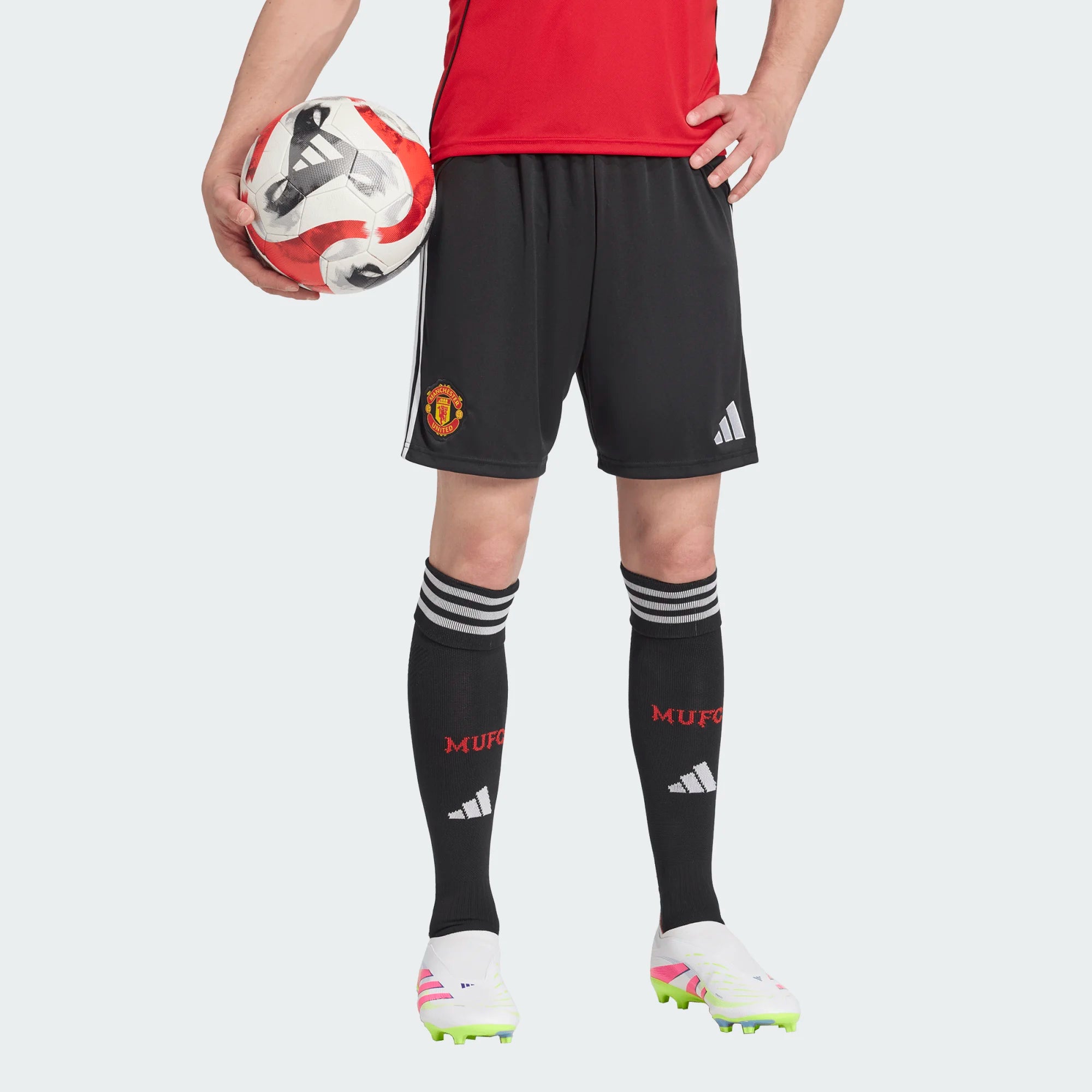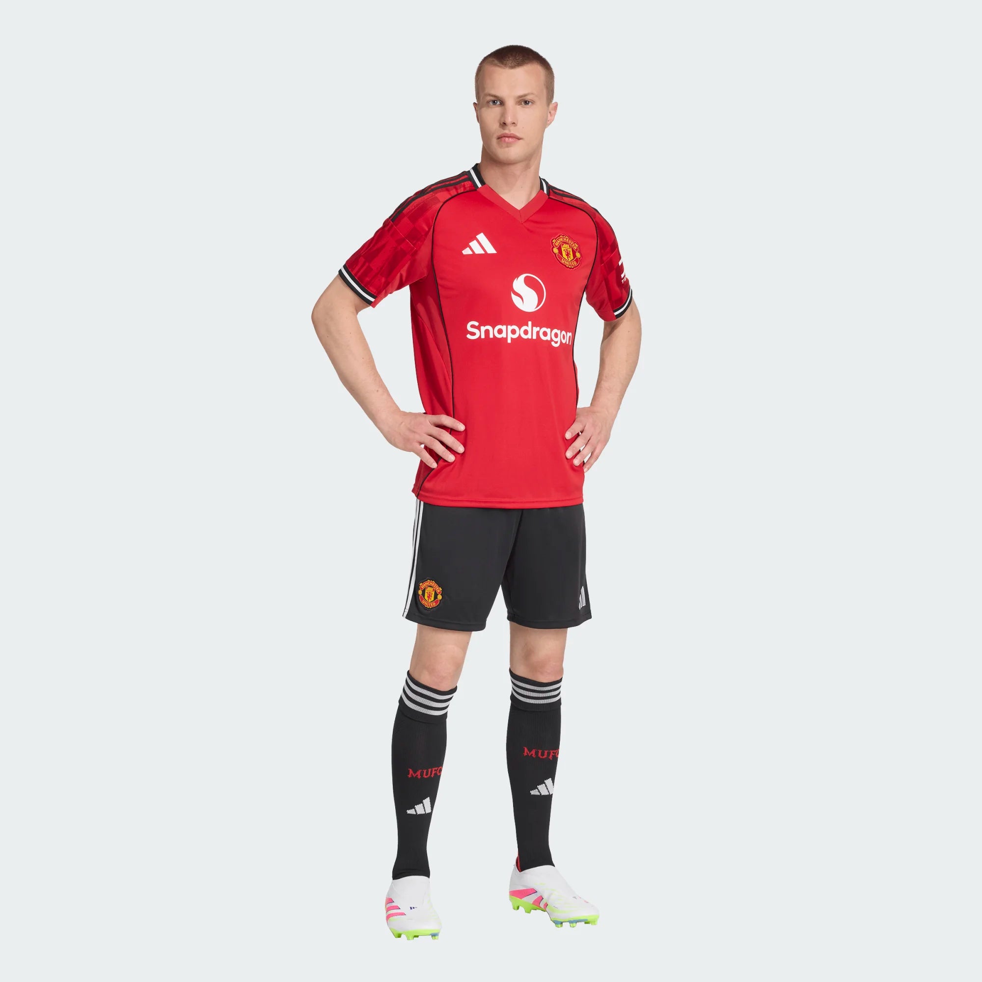 Ce short domicile Manchester United 25/26 adulte en version noire, signé adidas et disponible chez PlanetFoot, célèbre l’élégance du club avec sobriété. Fabriqué en tissu interlock léger, il offre une excellente respirabilité pour accompagner chaque mouvement.